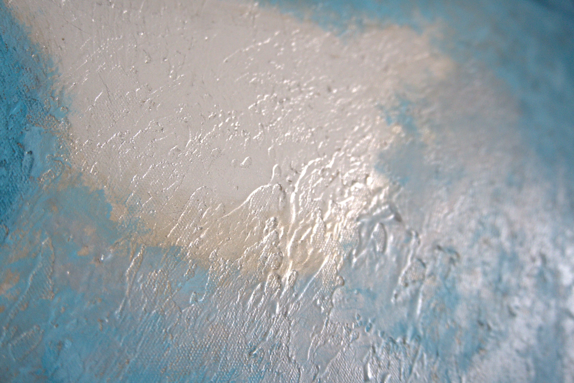 For this work, I combined metallic silver pigments, acrylic, and oil paint to enhance light reflection and deepen the harmony within the blue tonal range. The surface gently shifts under changing light, radiating a calm and meditative presence.